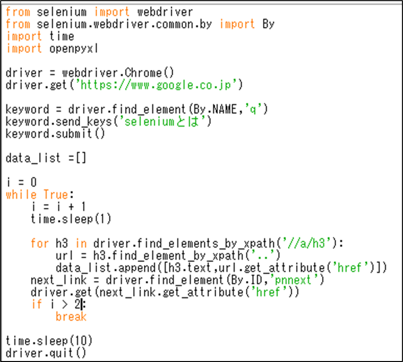 for文で、xpathでa-h3要素を指定し、取得したものを