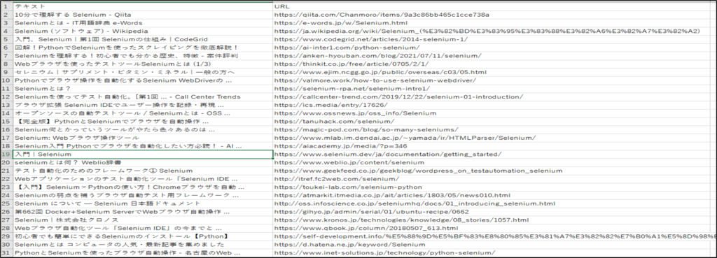 では、サイトのタイトル、URLをエクセルファイルに添付してみました。