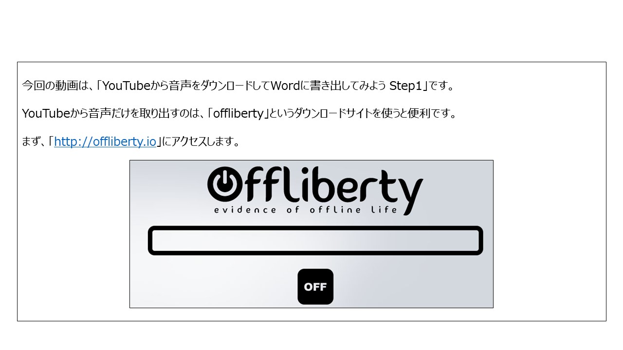 今回の動画は、「YouTubeから音声をダウンロードしてWordに書き出してみよう Step1」です。