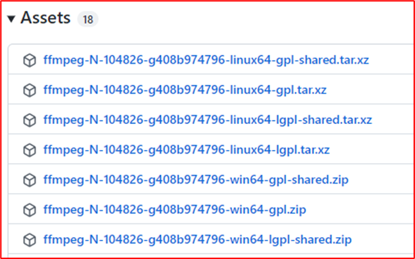 ここで、「ffmpeg-N-104826-g408b974796-win64-gpl.zip」をクリックします。