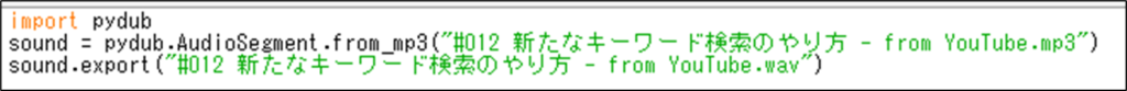そこで、今回は、「mp3⇒wav」に変更するコードを書きます。