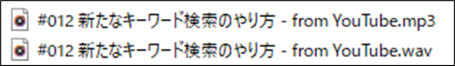 そうすると、「#012 新たなキーワード検索の作り方 –from YouTube.wav」ファイルが保存できました。