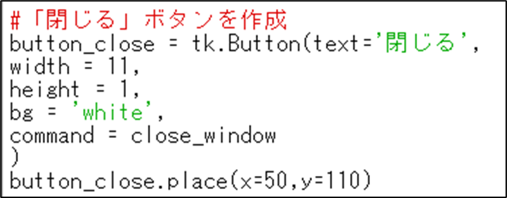 まず、「閉じる」ボタンを作成して、ファイル選択後、コードを終了することができるようにします。