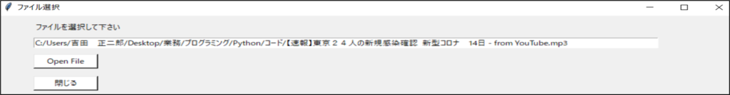 「#017 tkinterでfieldialogを使ってみよう」では、ファイルを選択するファイル選択用フレームを作成することができました。