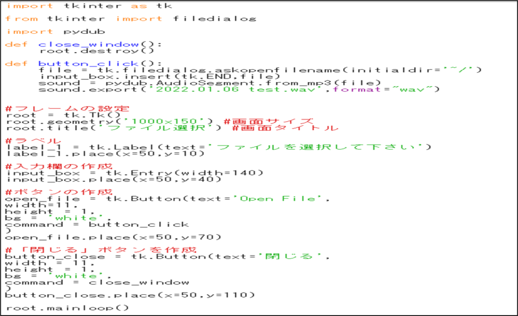 今回の動画は、「 tkinterでmp3ファイルをwavファイルに変換してみよう」でした。