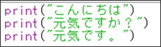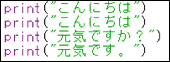 先程のプログラムの「こんにちは」のあとに、もう一つ「こんにちは」と表示されるように