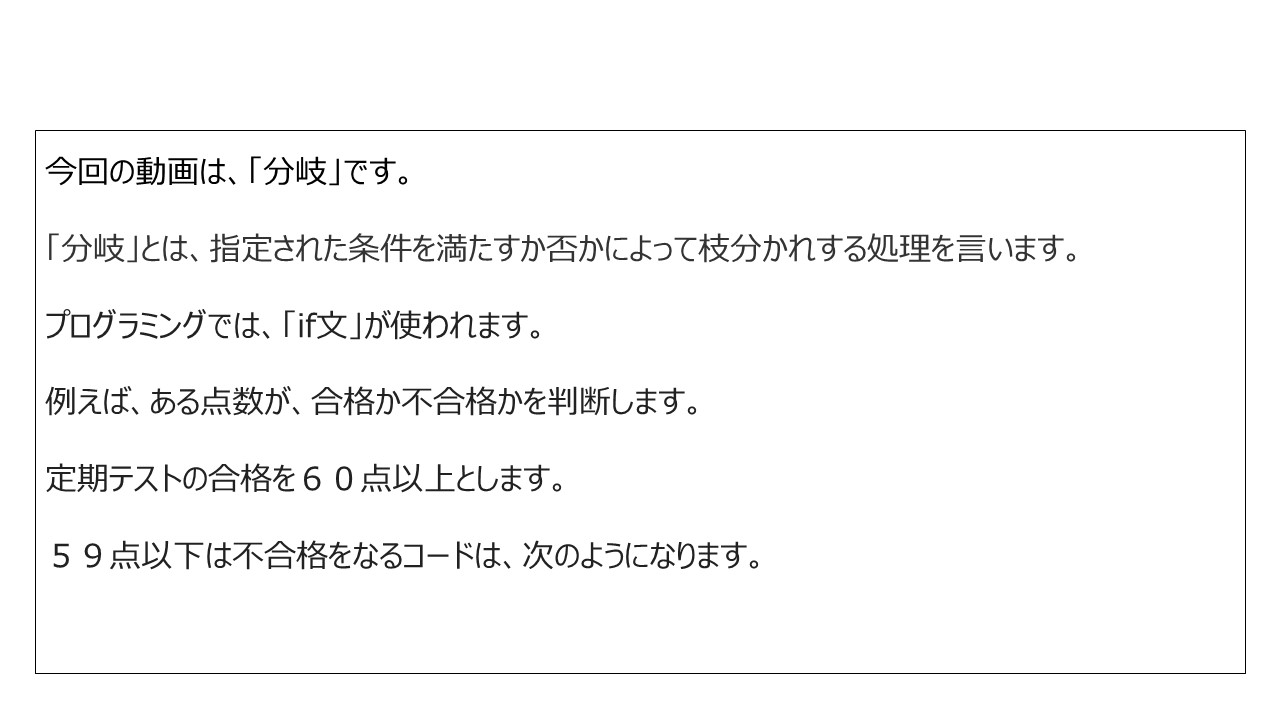 このように、 「分岐」は、指定された条件を満たすか否かによって枝分かれする処理のことです。