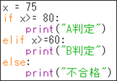 次に、3つ以上の分岐だと、「elif(エルイフ)」を使います。