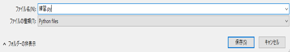 「練習.py」と入力して、保存をクリックして下さい。