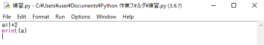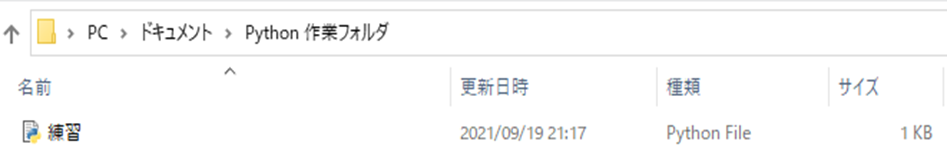 右のように練習というpython file が保存されました。