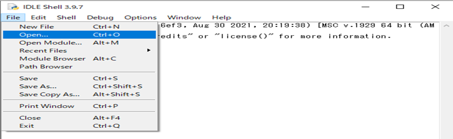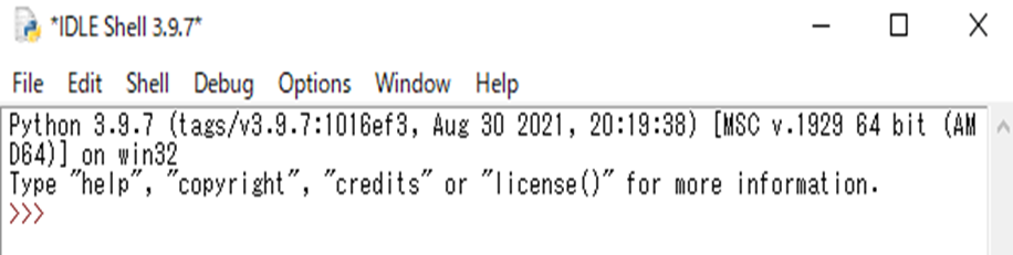 「IDLE」をクリックすると右のように「Shell ウィンドウ」が開きます。