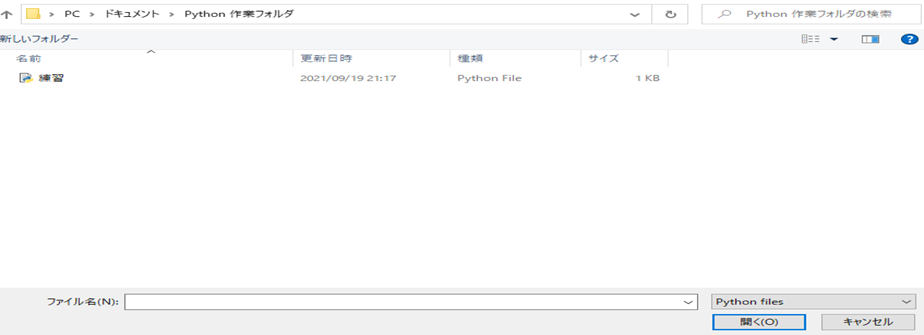ドキュメントのPython 作業フォルダの「練習」を「開く」をクリックすると