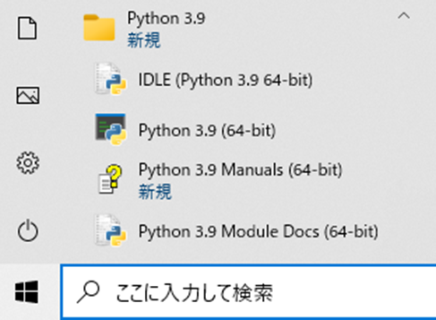 Windowsのスタートボタンをクリックして、右の「IDLE」をクリックします。