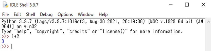 それでは、「IDLE」を起動してみましょう。